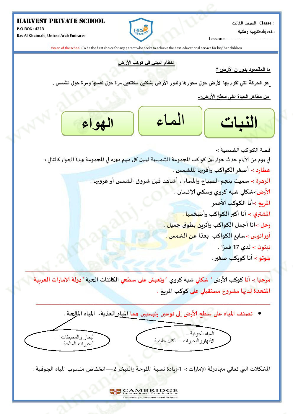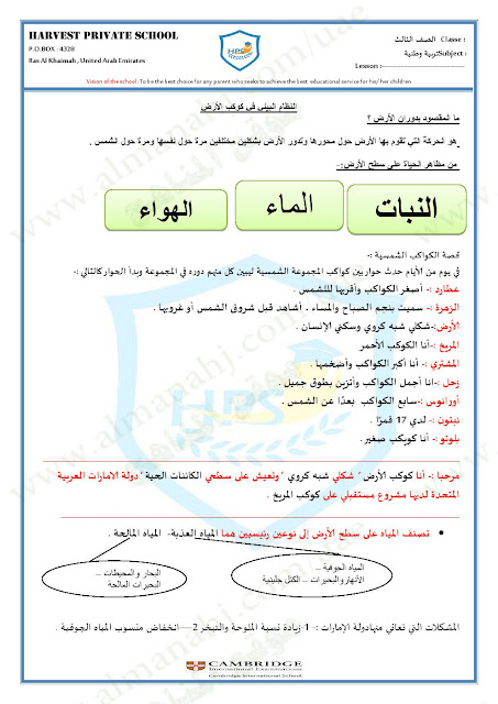 معلومات الملف: الصف الثالث, الفصل الأول, اجتماعيات, 2017-2018, ورقة عمل النظام البيئي في كوكب الارض | |||