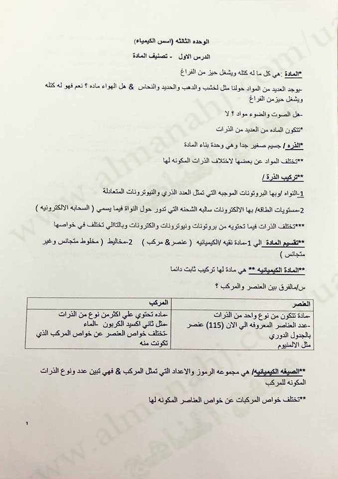 اضغط هنا لتحميل وعرض ( تلخيص الوحدة الثالثة الدرس الأول تصنيف المادة ) |