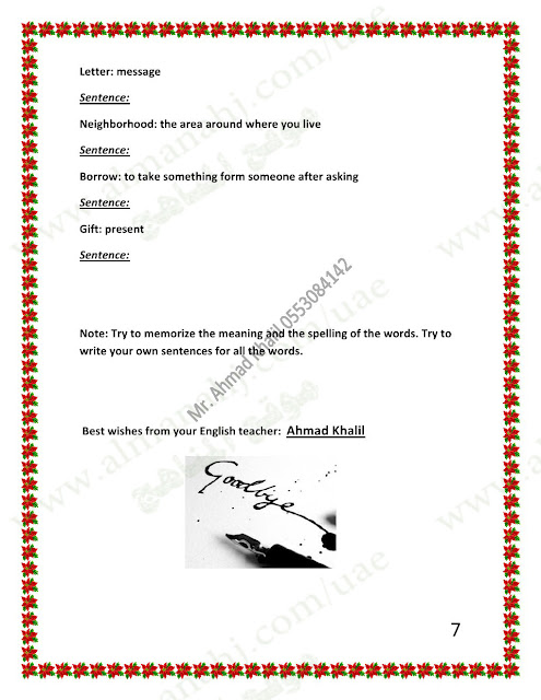 | أنت هنا: موقع المناهج ⇦ المناهج الإماراتية ⇦ الصف السابع ⇦ لغة انجليزية ⇦ الفصل الأول ⇦ أوراق عمل |
