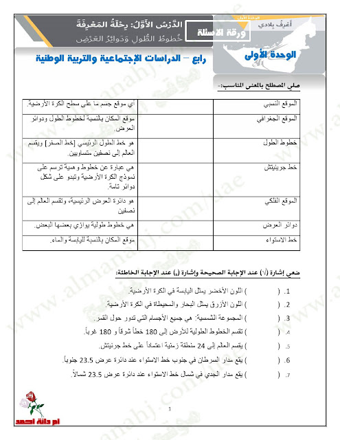 معلومات الملف: الصف الرابع, الفصل الأول, اجتماعيات, 2017-2018, أسئلة لامتحان الوحدة الاولى (16 صفحة) | |||