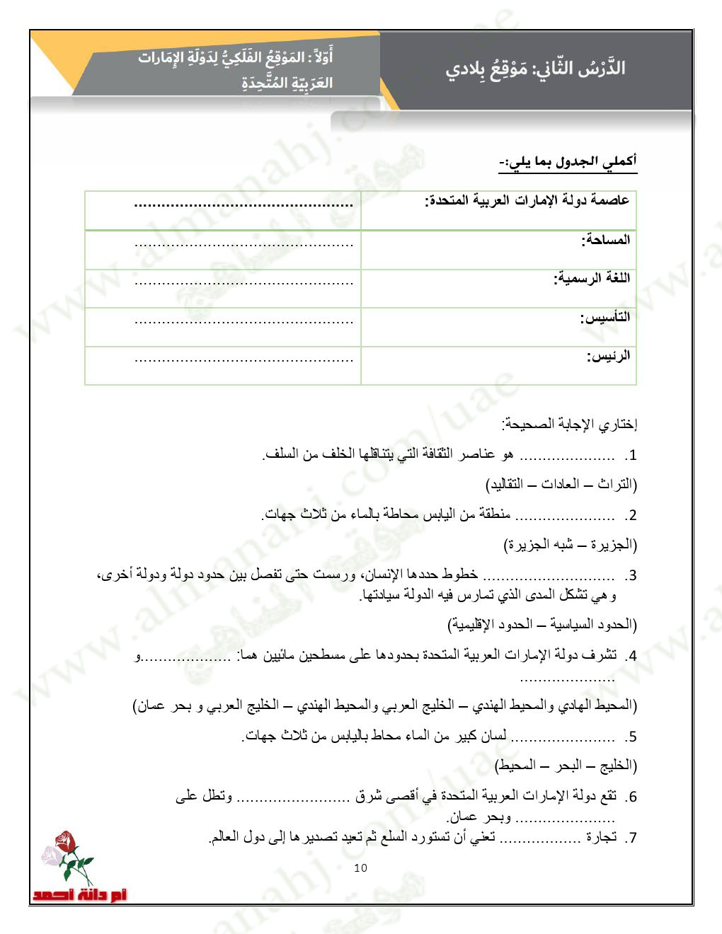 أهلاً بكم جميعاً طلاباً ومدرسين وأهالي طلبة ومهتمين، في قسم دولة الإمارات ، نحن الآن في الفصل الأول من العام الدراسي 2025/2026 وتاريخ اليوم 2025/10/11 م | |
