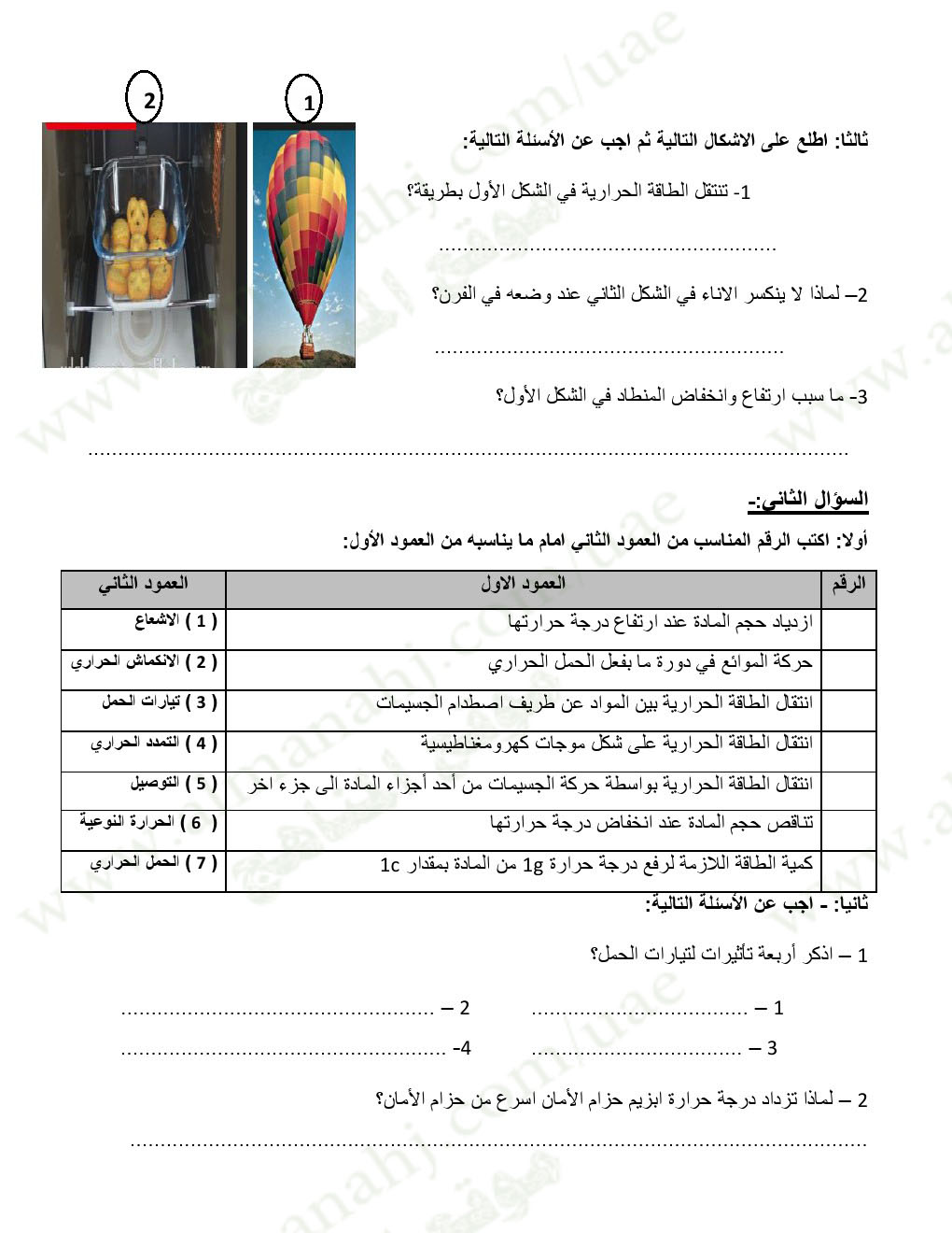 معلومات الملف: الصف التاسع العام, الفصل الأول, علوم, 2017-2018, مراجعة لطرق انتقال الطاقة الحرارية | |||