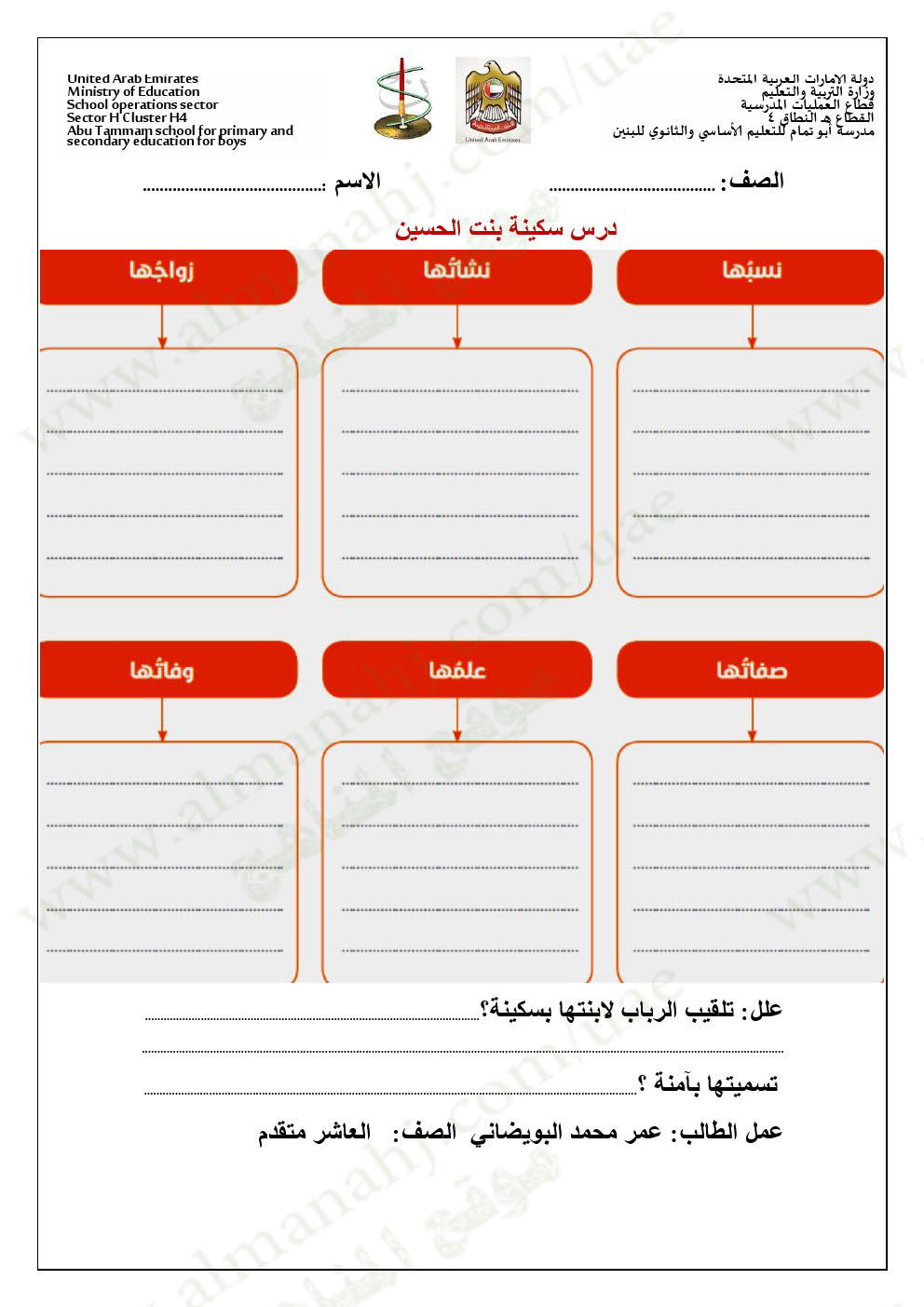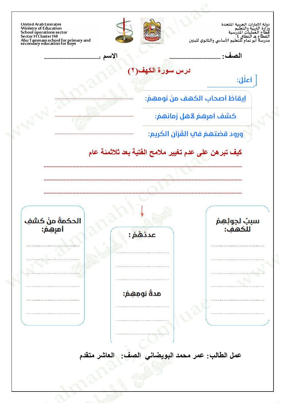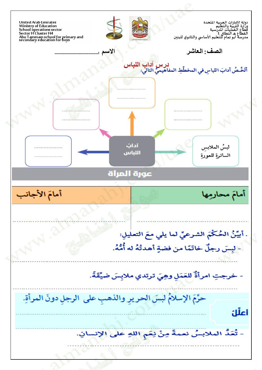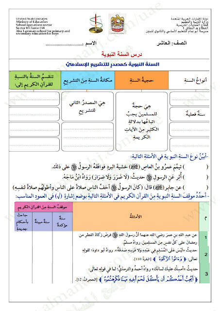أنت هنا: موقع المناهج ⇦ المناهج الإماراتية ⇦ الصف العاشر ⇦ تربية اسلامية ⇦ الفصل الأول ⇦ أوراق عمل |