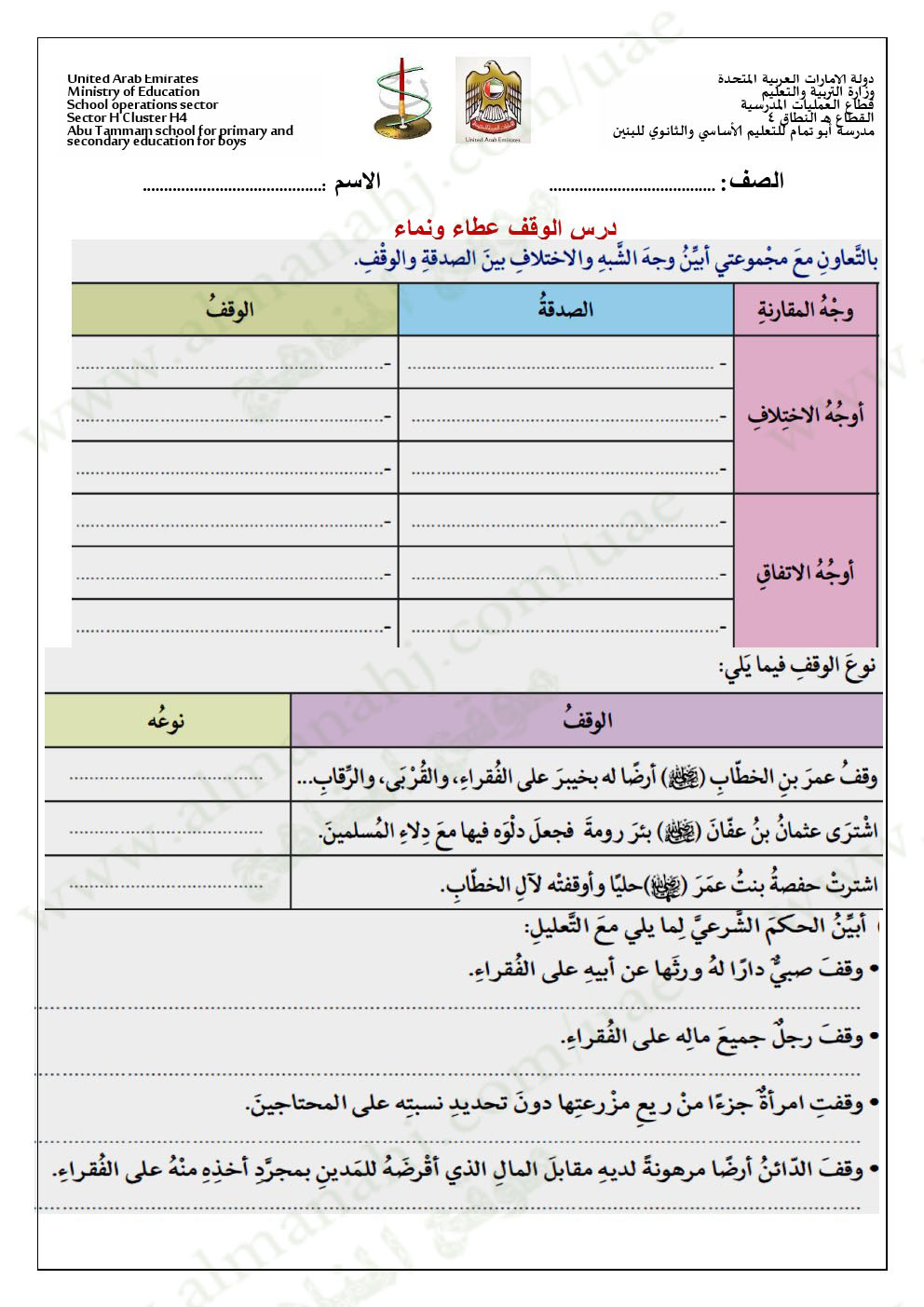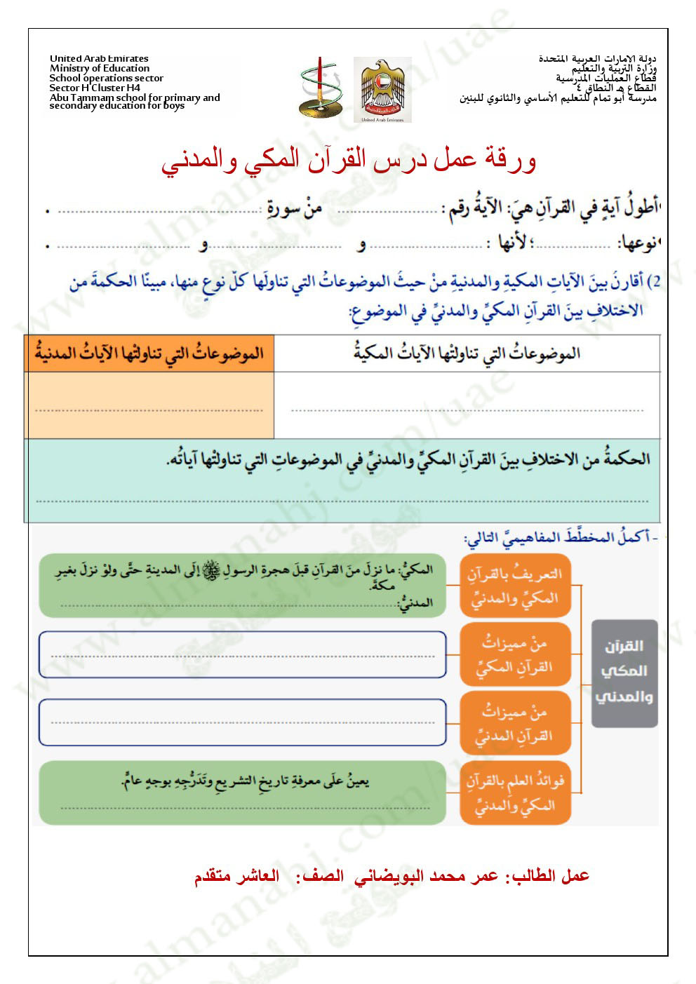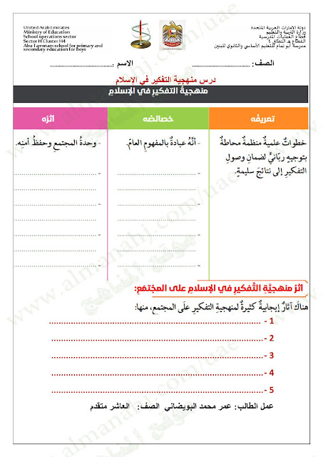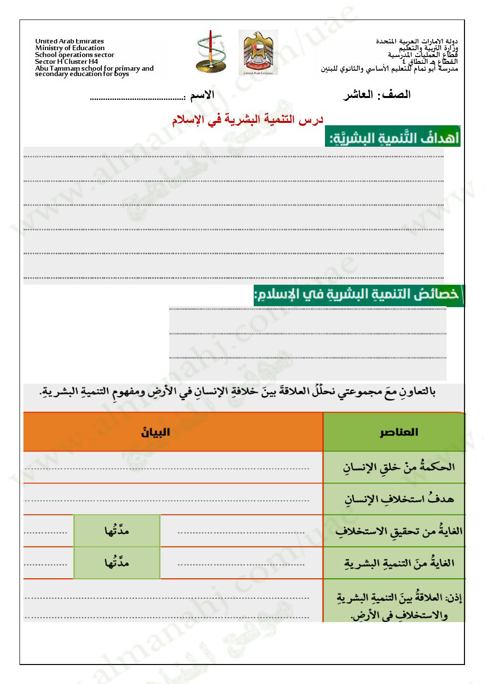 معلومات الملف: الصف العاشر, الفصل الأول, تربية اسلامية, 2017-2018, أوراق عمل جميع دروس الفصل الأول | |||