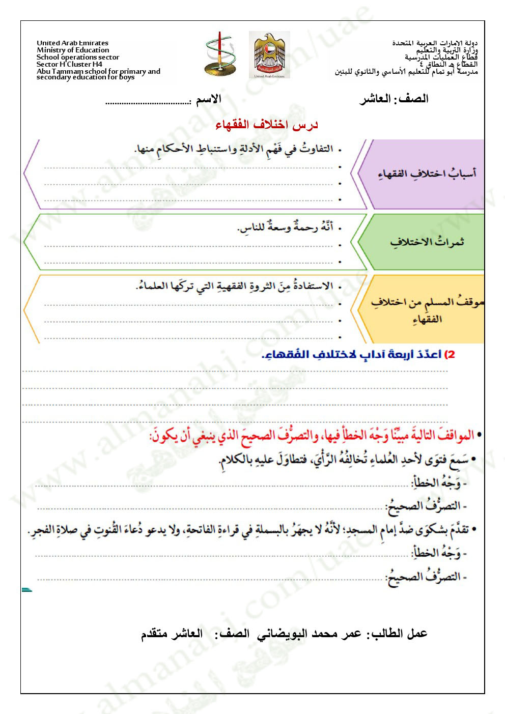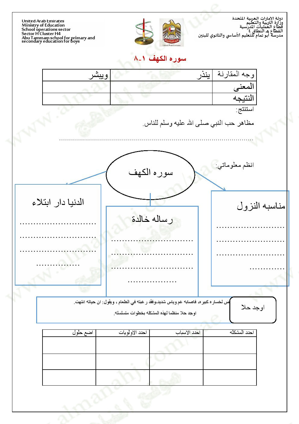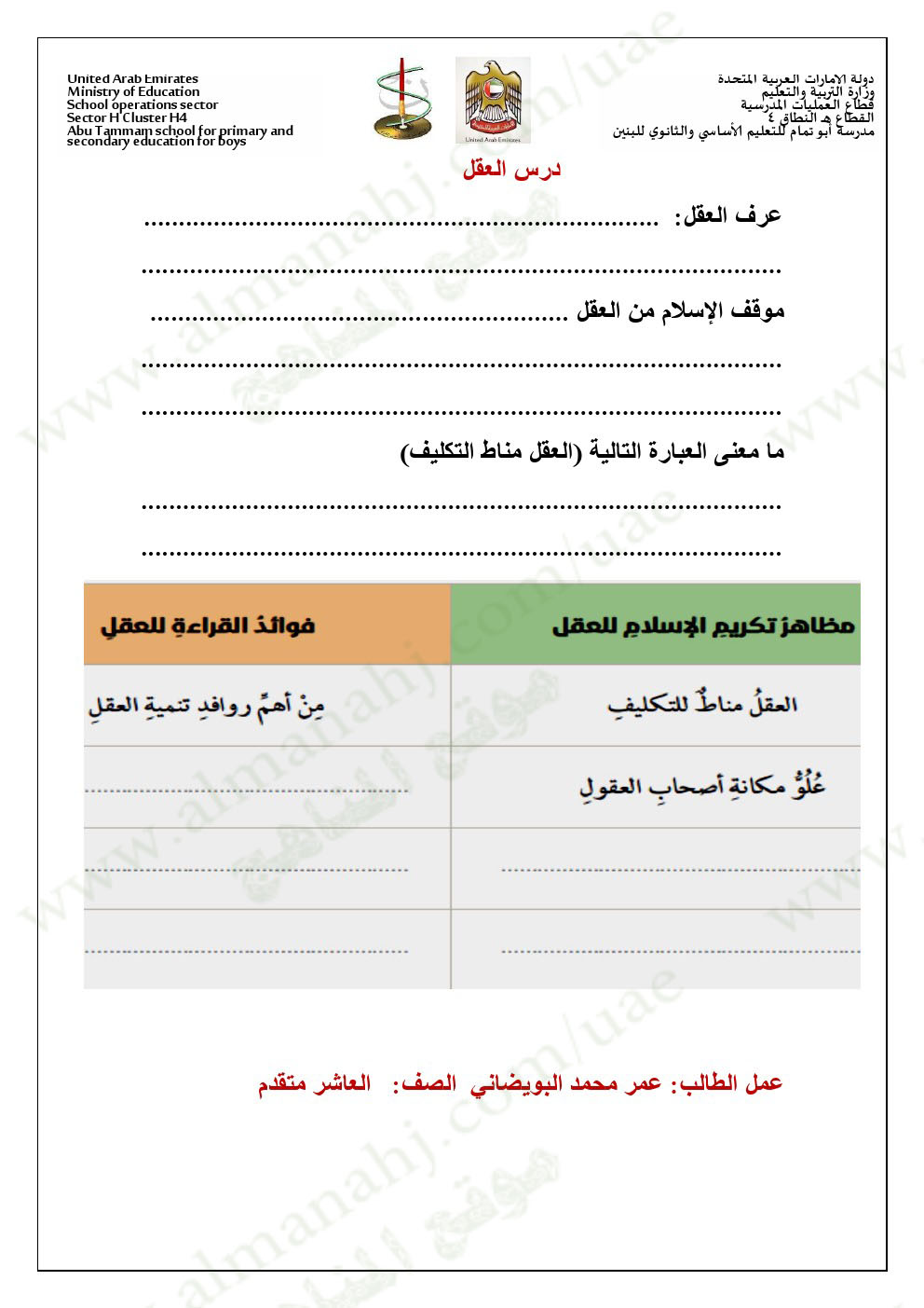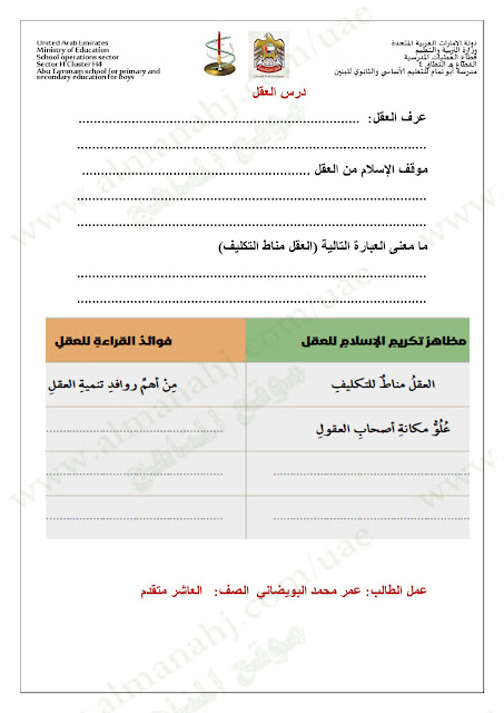 | أنت هنا: موقع المناهج ⇦ المناهج الإماراتية ⇦ الصف العاشر ⇦ تربية اسلامية ⇦ الفصل الأول ⇦ أوراق عمل |