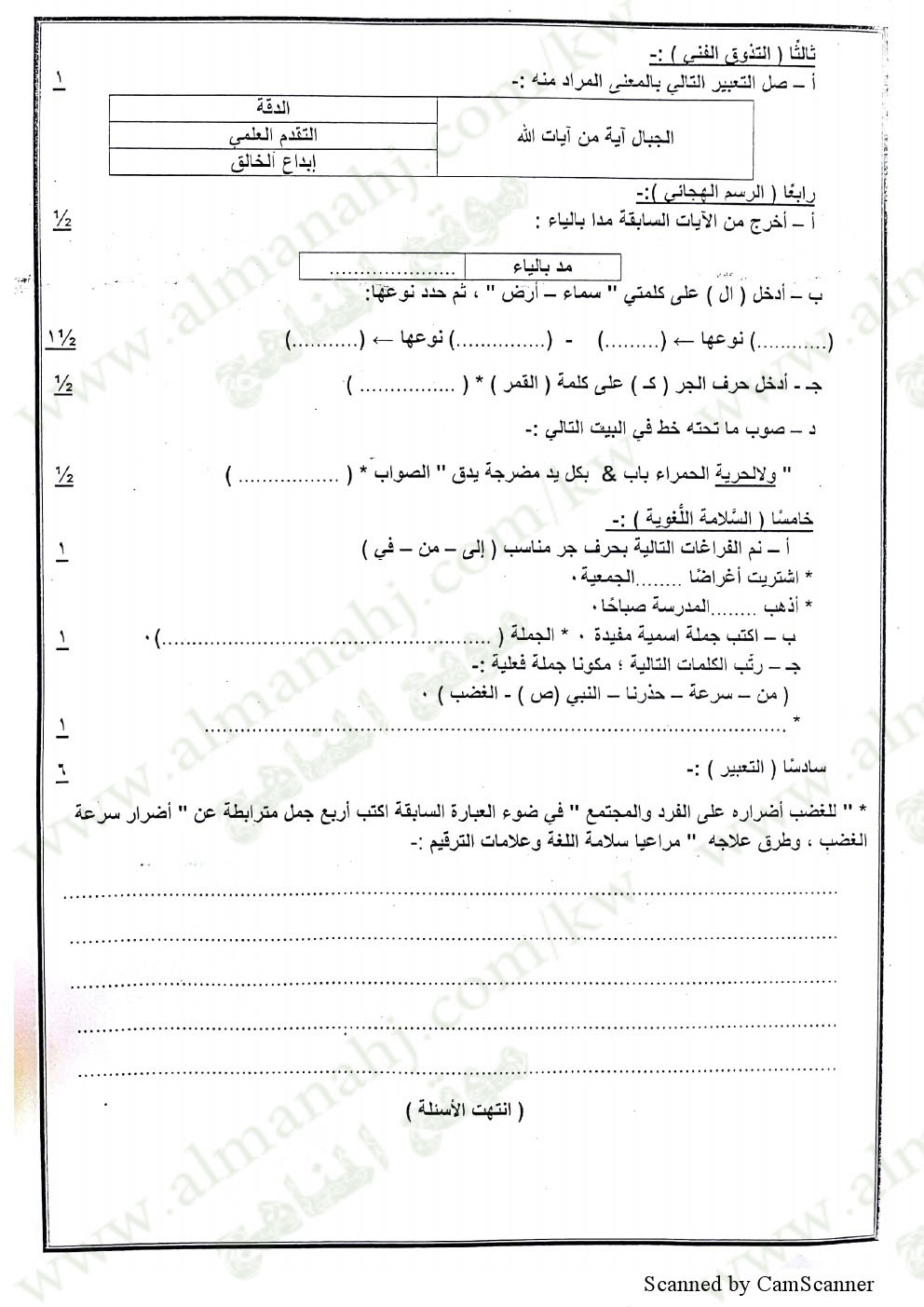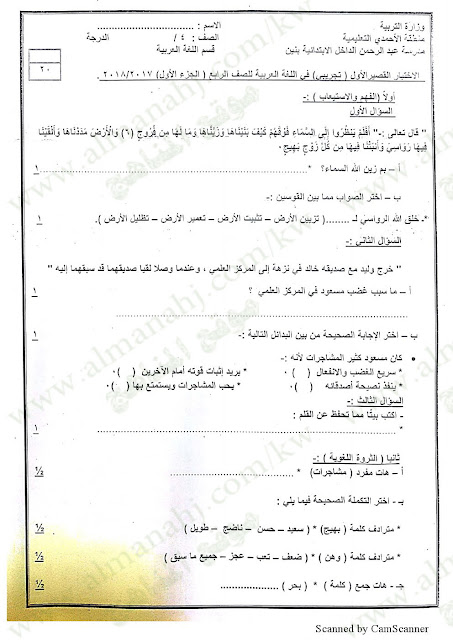 الصف الرابع, لغة عربية, الفصل الأول , 2017-2018, الاختبار القصير الأول - الجزء الأول