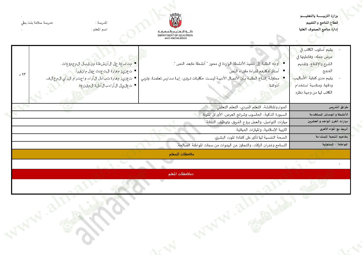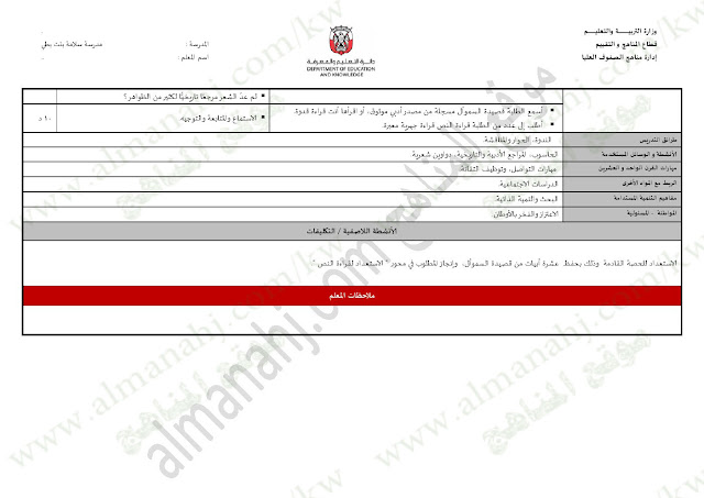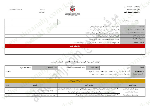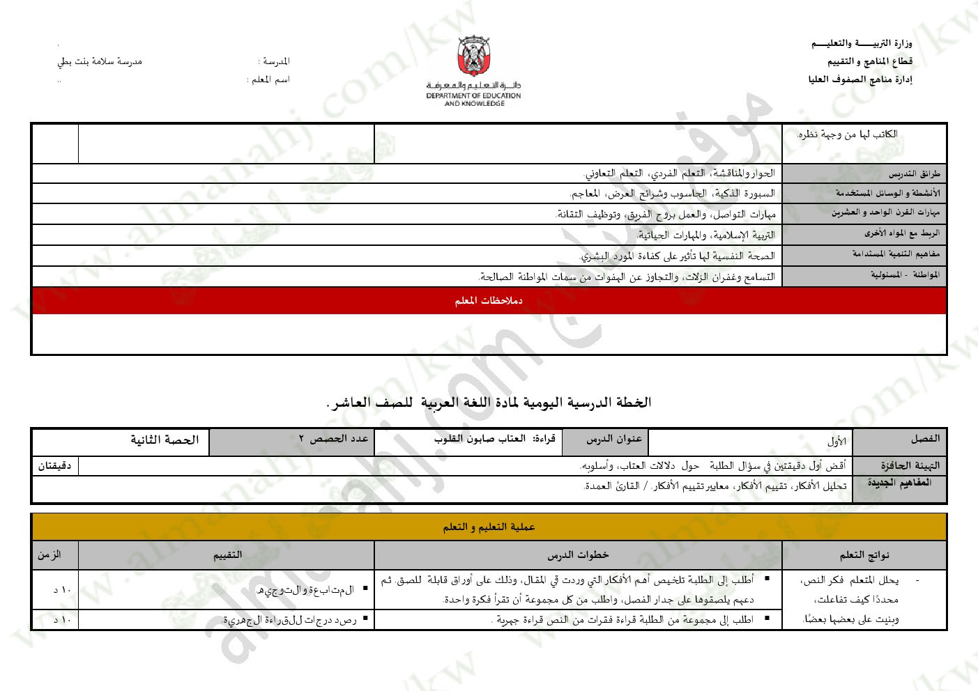 الخطة الدرسية اليومية (ملف خاص بالمدرسين) | |||