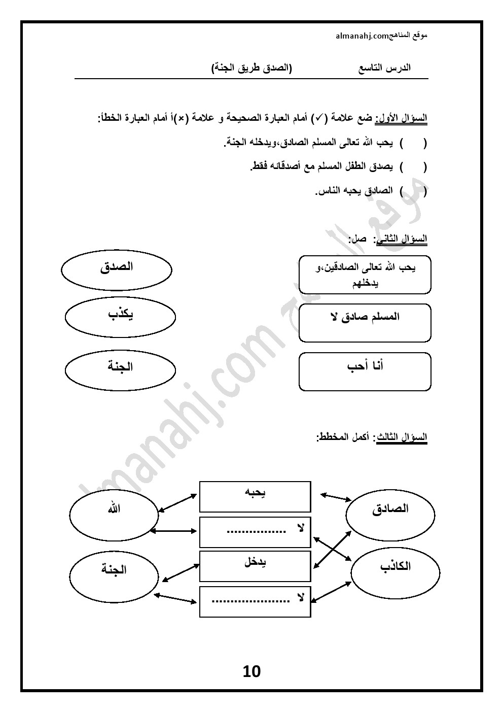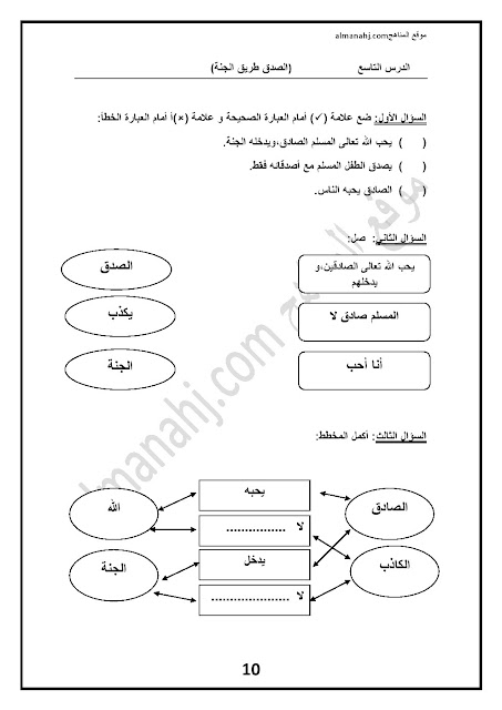 ورقة عمل حول درس (الصدق طريق الجنة)