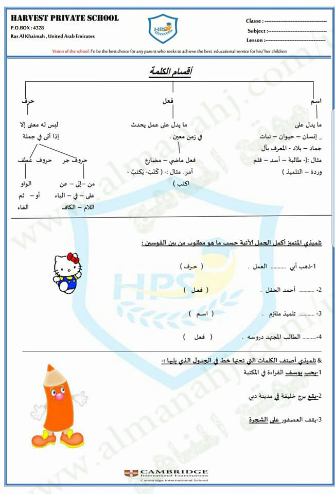 | ورقة عمل (أقسام الكلمة) + الحل | ||