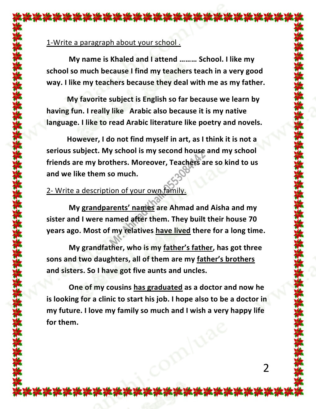 Writing Sampleunit 2 - إعداد: Ahmad khalil | |||