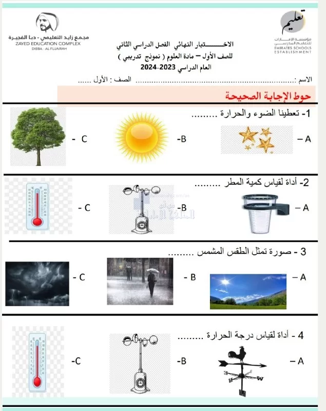 أنت هنا: موقع المناهج ⇦ المناهج الإماراتية ⇦ الصف الأول ⇦ علوم ⇦ الفصل الثاني ⇦ اختبارات |