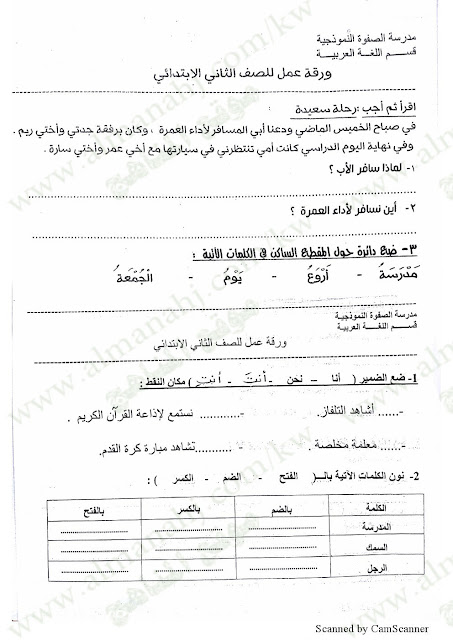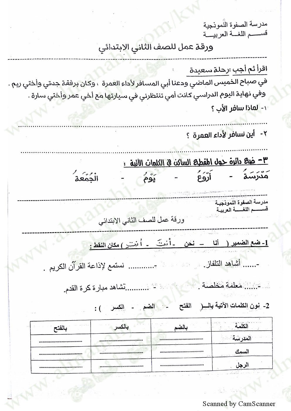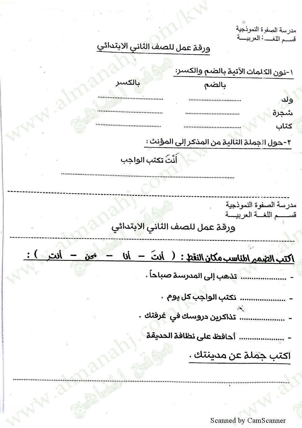 الصف الثاني, لغة عربية, الفصل الأول , 2017-2018, أوراق عمل متنوعة