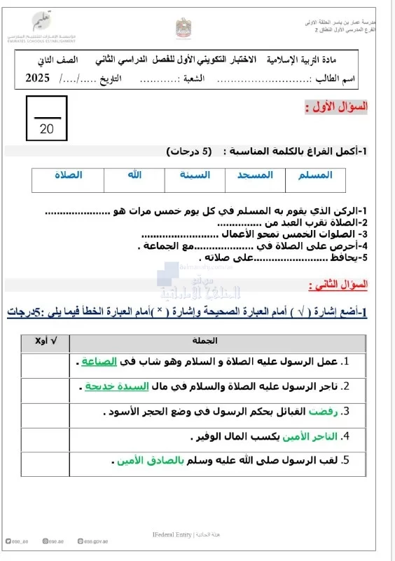 أنت هنا: موقع المناهج ⇦ المناهج الإماراتية ⇦ الصف الثاني ⇦ تربية اسلامية ⇦ الفصل الثاني ⇦ اختبارات |