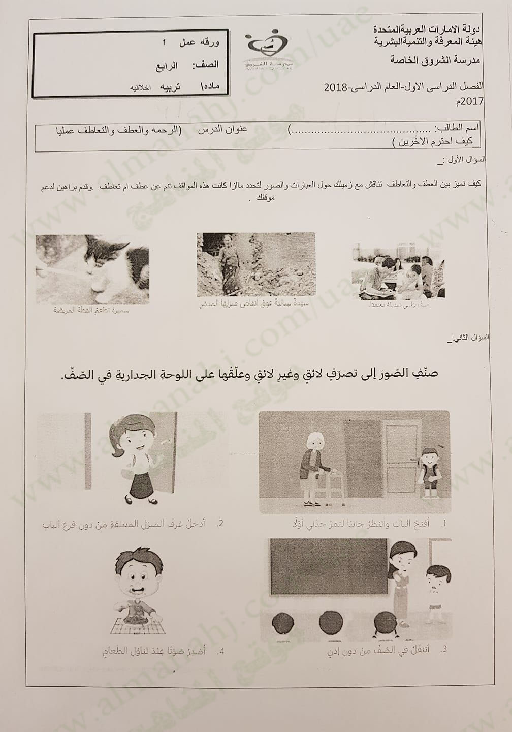 معلومات الملف: الصف الرابع, الفصل الأول, تربية أخلاقية, 2017-2018, ورقة عمل في الرحمة والتعاطف والتعاطف | ||