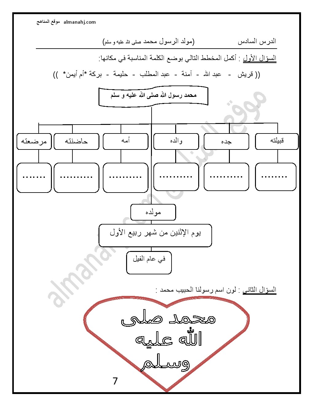 ورقة عمل درس (مولد الرسول صلى الله عليه وسلم)