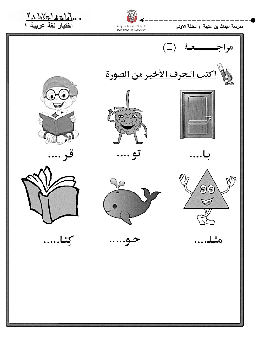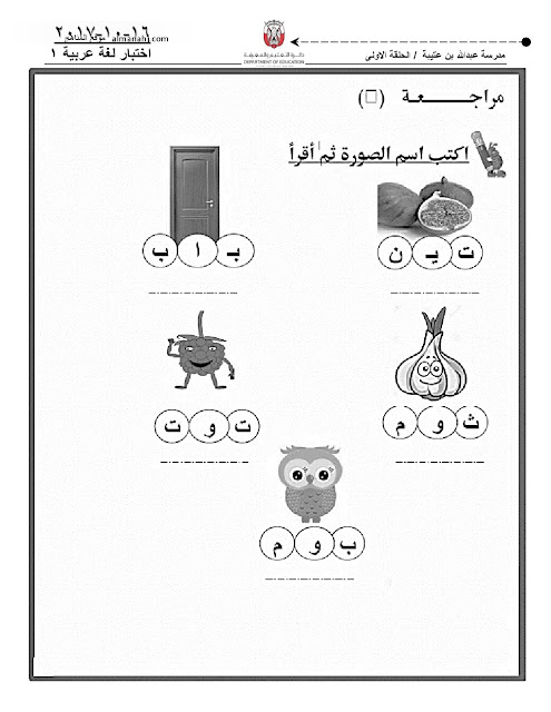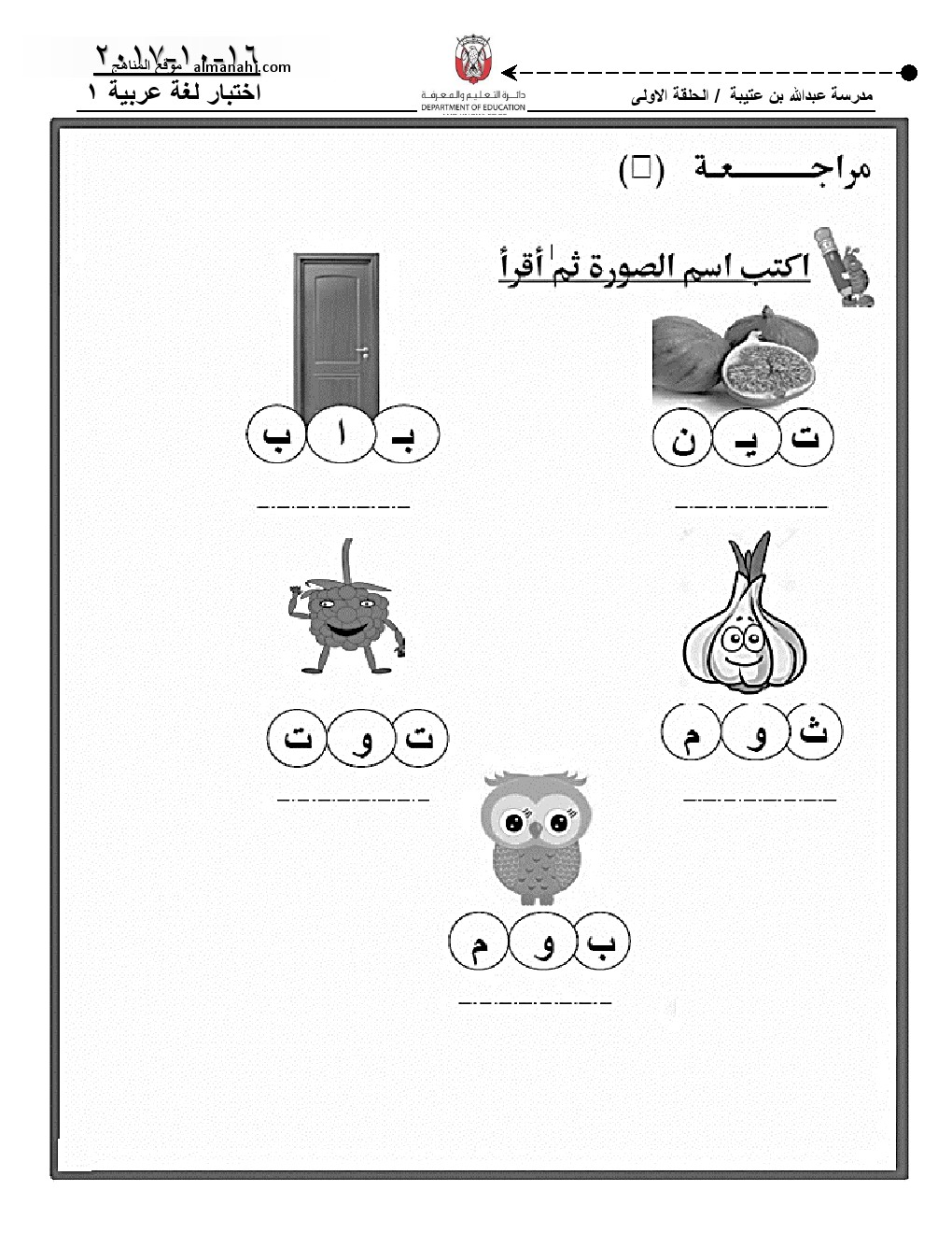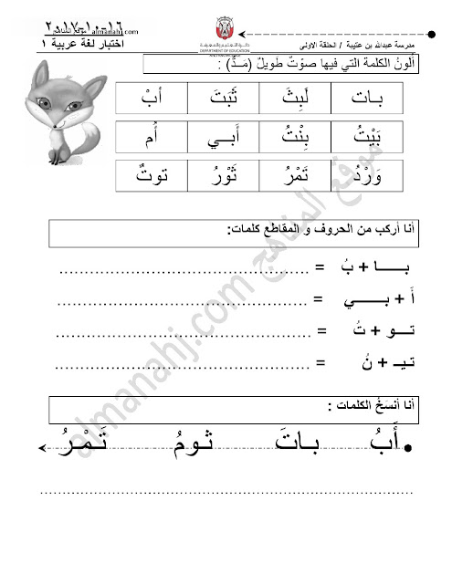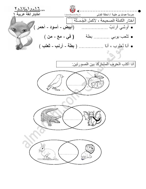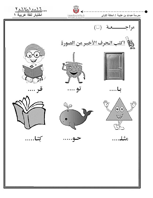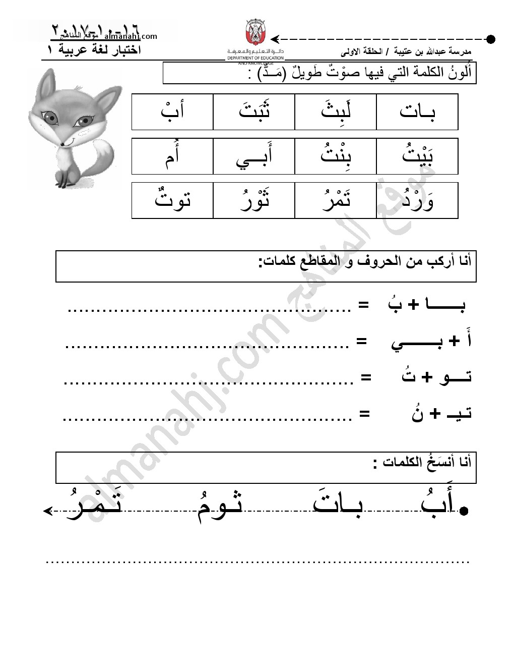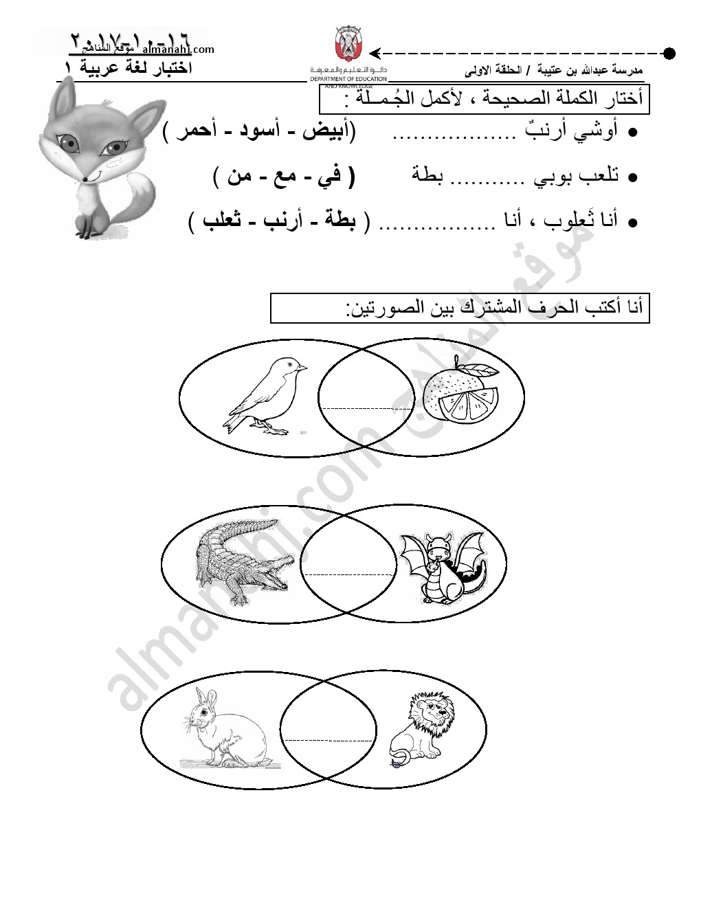 الصف الأول, الفصل الأول, لغة عربية , 2017-2018, اختبار شامل (5 صفحات)