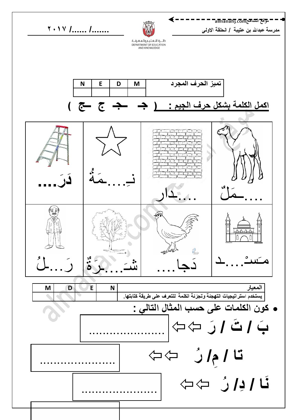 | أوراق عمل حرف الجيم | |||