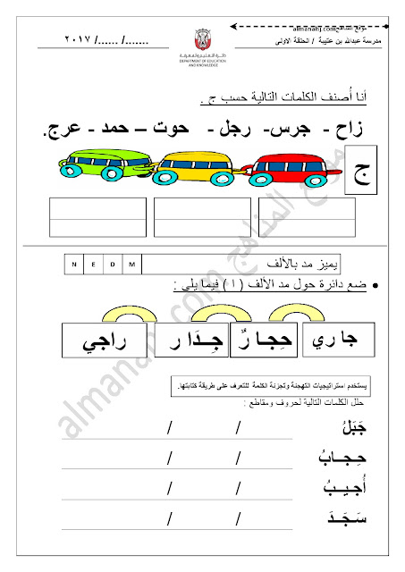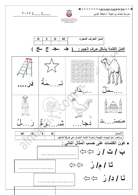 معلومات الملف: الصف الأول, الفصل الأول, لغة عربية, 2017-2018, أوراق عمل حرف الجيم | |||