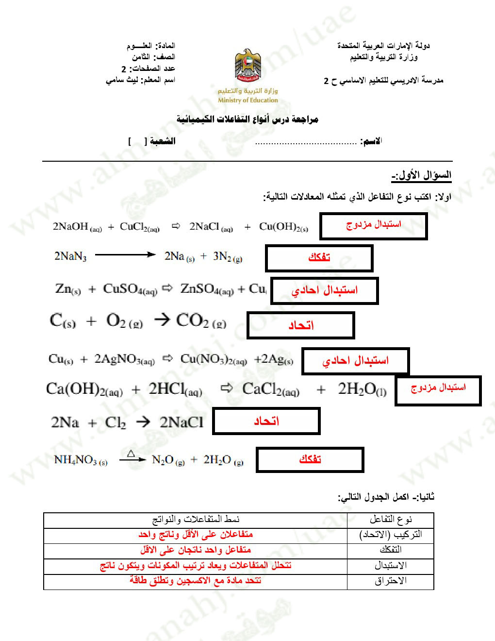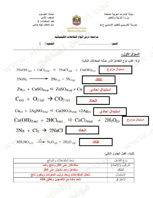 | اضغط هنا لتحميل وعرض ( إجابة مراجعة أنواع التفاعلات الكيميائية ) | |||
