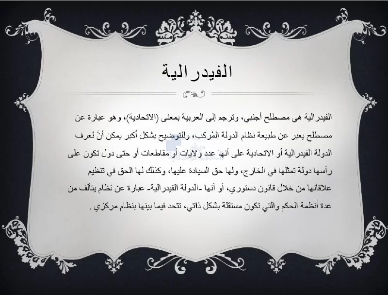 معلومات الملف: نرفق لكم ملف يتضمن عرض بوربوينت حول درس الفيدرالية