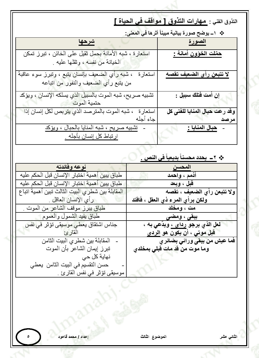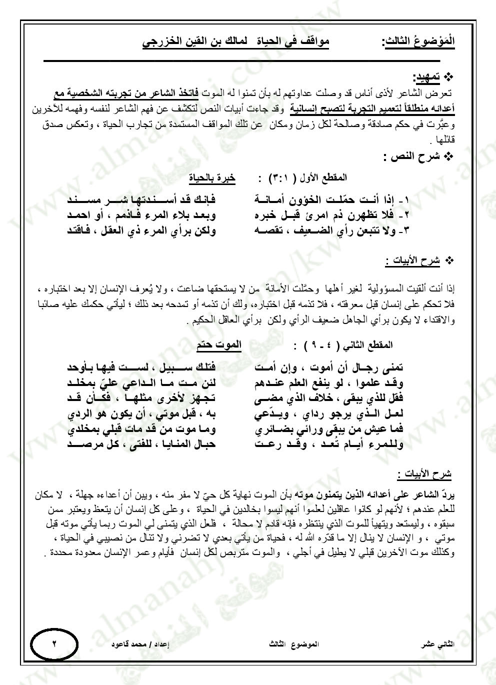 معلومات الملف: الصف الثاني عشر, لغة عربية, الفصل الأول, 2017-2018, الموضوع الثاني عشر- مواقف في الحياة | |||