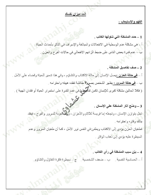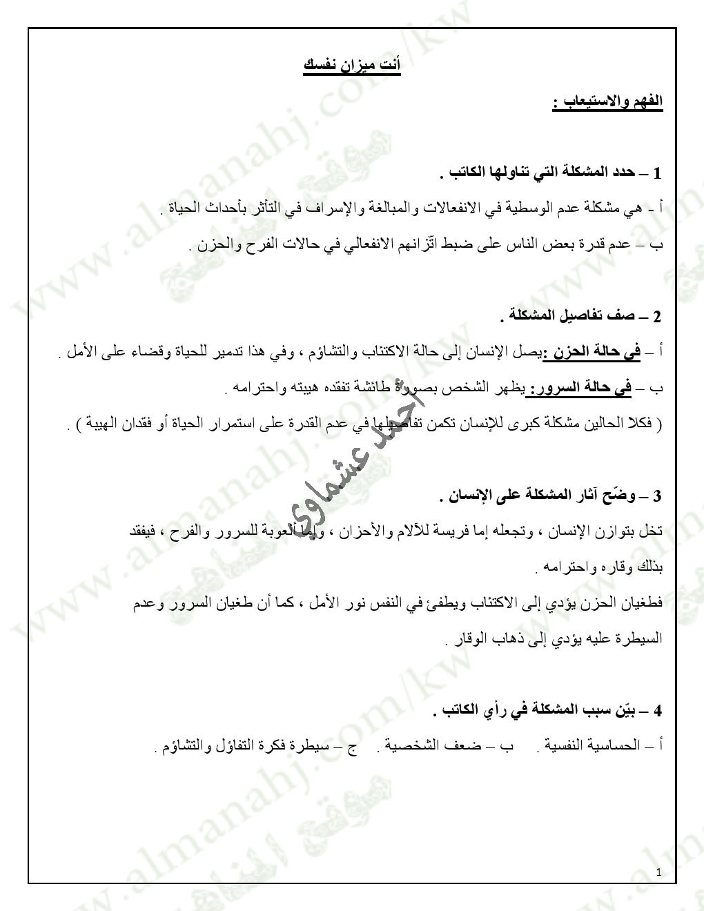 معلومات الملف: الصف الحادي عشر, لغة عربية, الفصل الأول, 2017-2018, أنت ميزان نفسك | |||