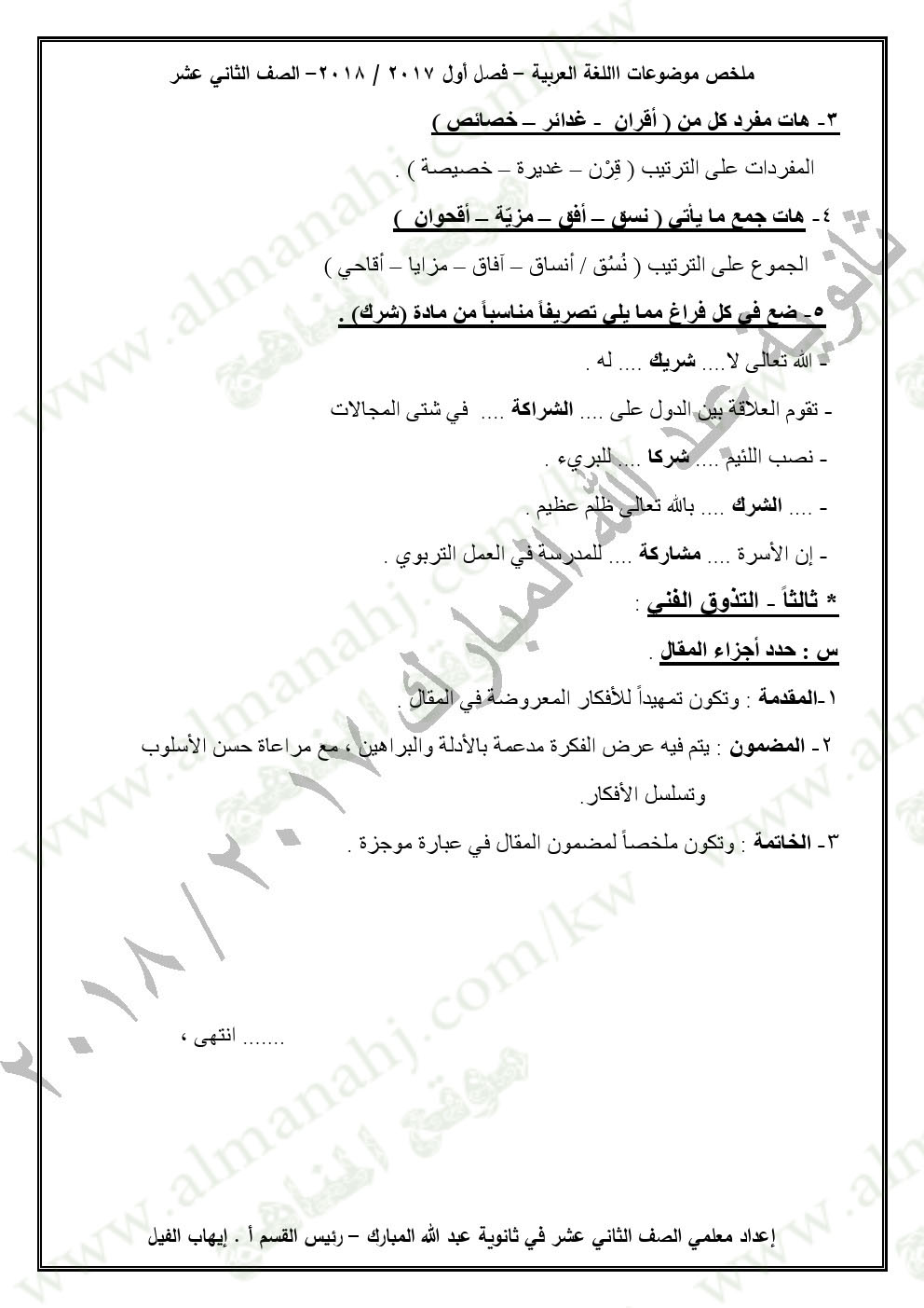 معلومات الملف: الصف الثاني عشر, لغة عربية, الفصل الأول, 2017-2018, ملخص موضوعات اللغة العربية.pdf | |||