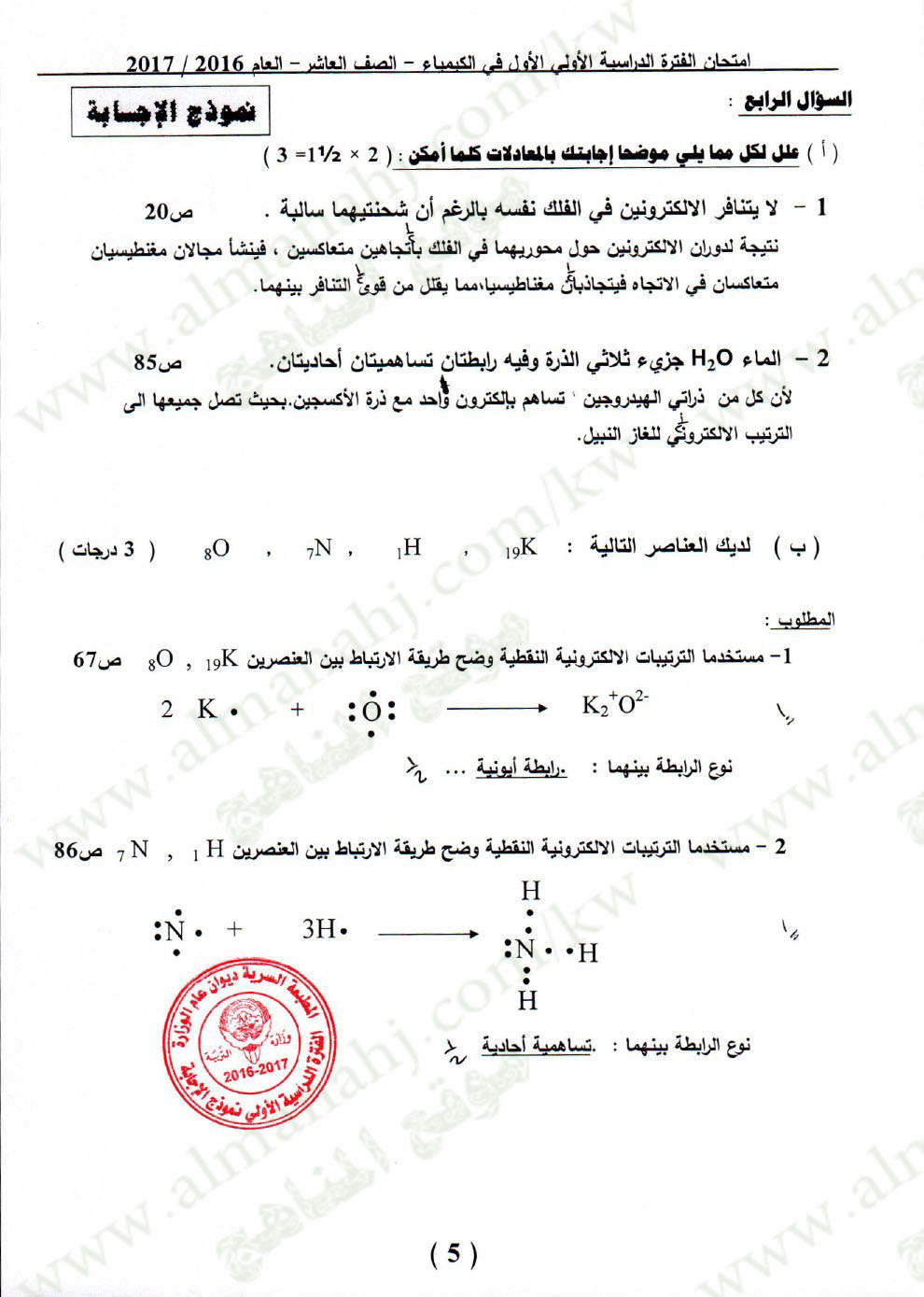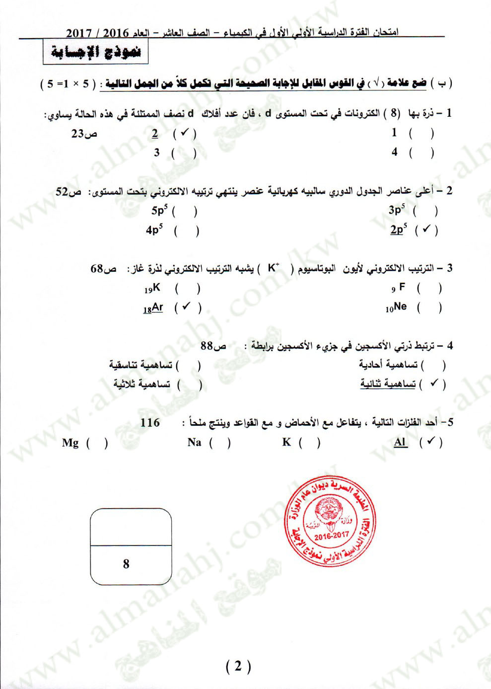 | كيمياء نموذج إجابة الفترة الأولى | |||