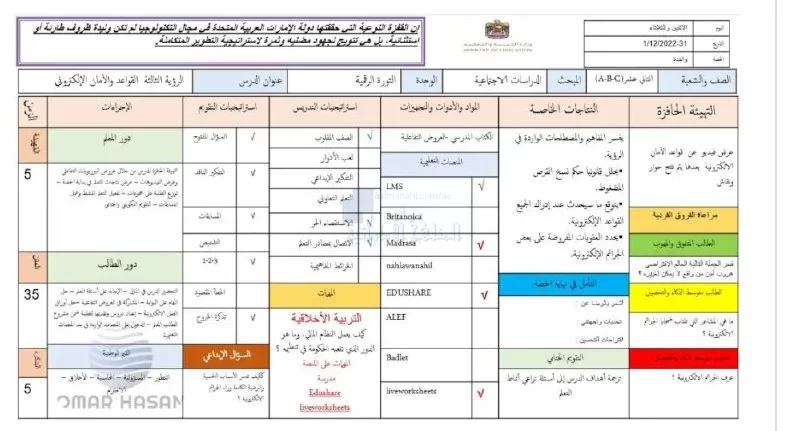 الملاحظات المثبتة في المناهج الإماراتية | |
