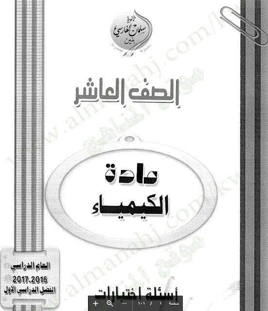 معلومات الملف: الصف العاشر, كيمياء, الفصل الأول, 2017-2018, أسئلة اختبارات + إجاباتها النموذجية | ||