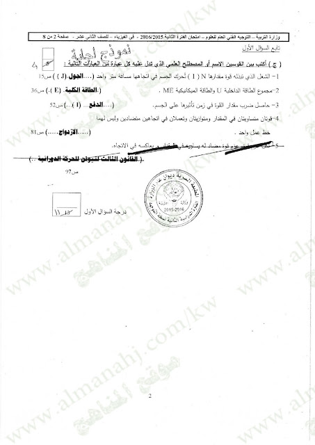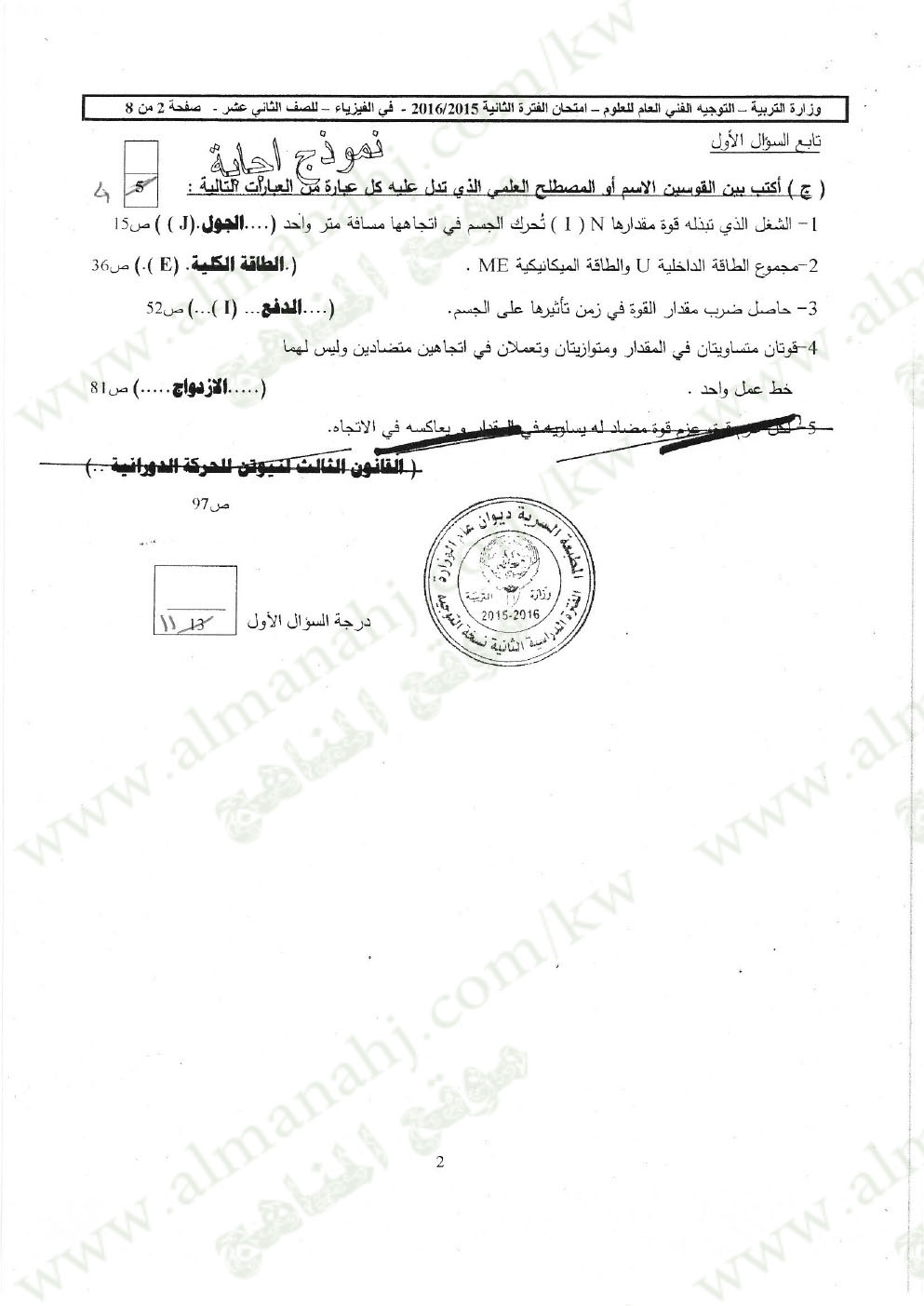 معلومات الملف: الصف الثاني عشر, فيزياء, الفصل الأول, 2015-2016,نموذجاجابة امتحان 2015-2016.pdf | |||