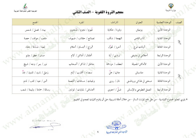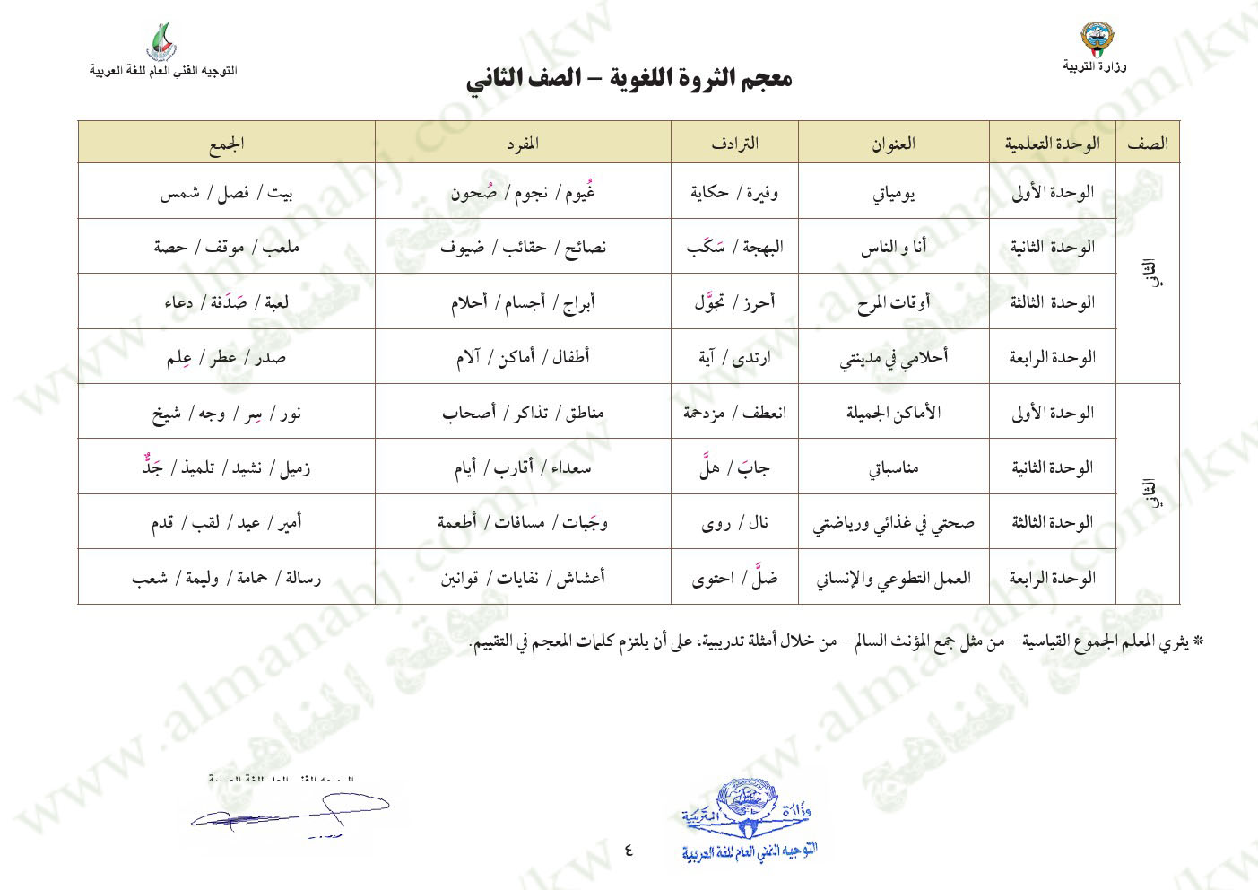 | الصف الثناني معجم الثروة اللغوية + إرشادات الاستخدام | ||