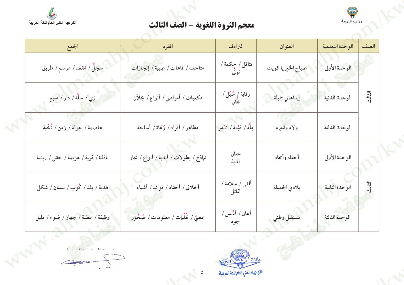 معلومات الملف: الصف الثالث, لغة عربية, الفصل الأول, 2017-2018, معجم الثروة اللغوية + إرشادات الاستخدام | ||