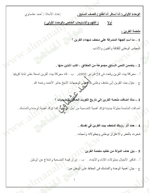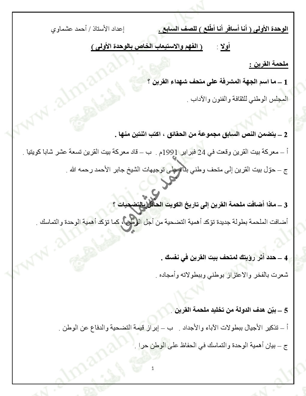 معلومات الملف: الصف السابع, لغة عربية, الفصل الأول, 2017-2018, الوحدة الأولى (أنا أسافر أنا أطالع) للأستاذ أحمد عشماوي | |||