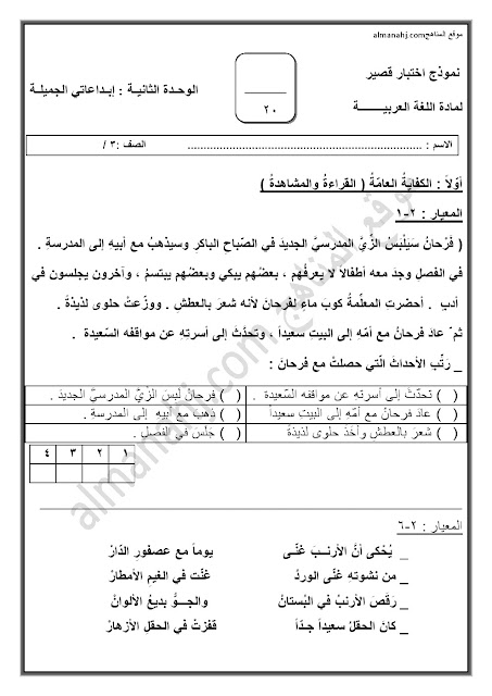 الصف الثالث, لغة عربية, الفصل الأول, 2017-2018, نموذج اختبار قصير للتحميل اتبع الرابط التالي: http://aefiles.website/do.php?id=763">http://aefiles.website/do.php?id=763