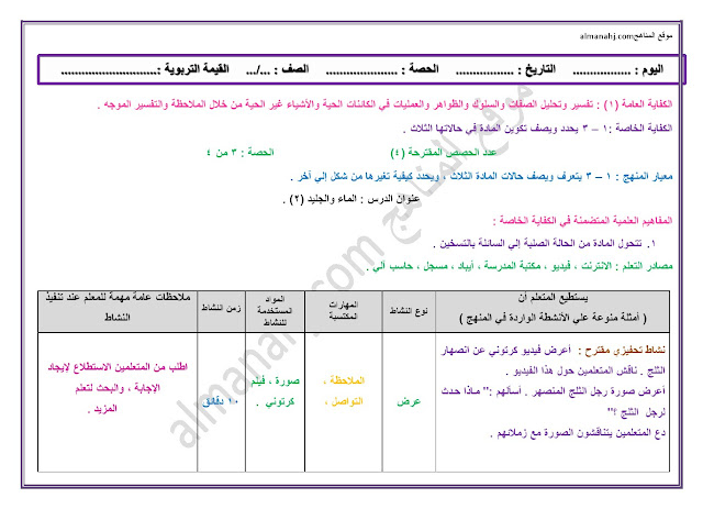 معلومات الملف: الصف الأول, علوم, الفصل الأول, 2017-2018, درس الماء والجليد | |||