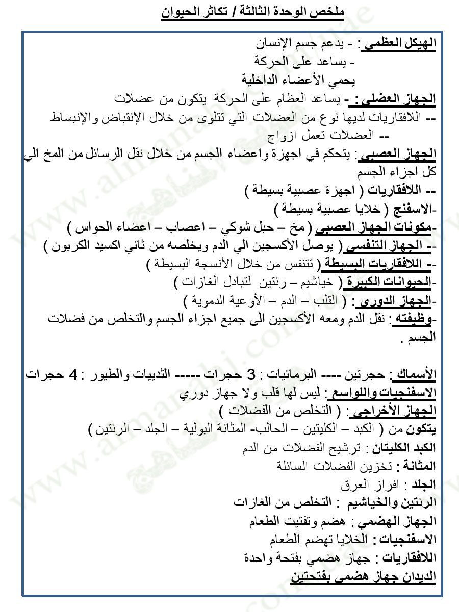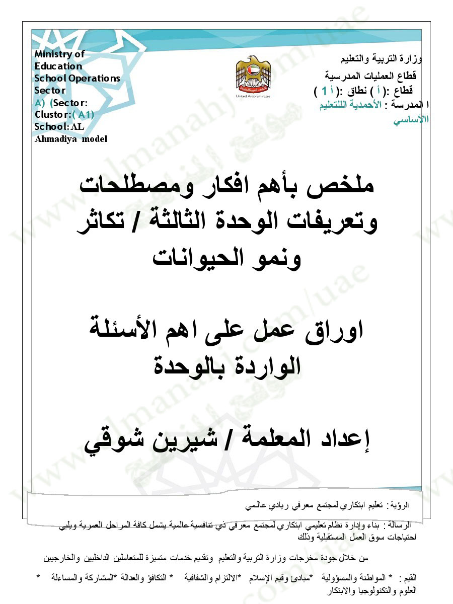 ملخص و أوراق عمل الوحدة الثالثة (تكاقر الحيوانات ونموها) | |||