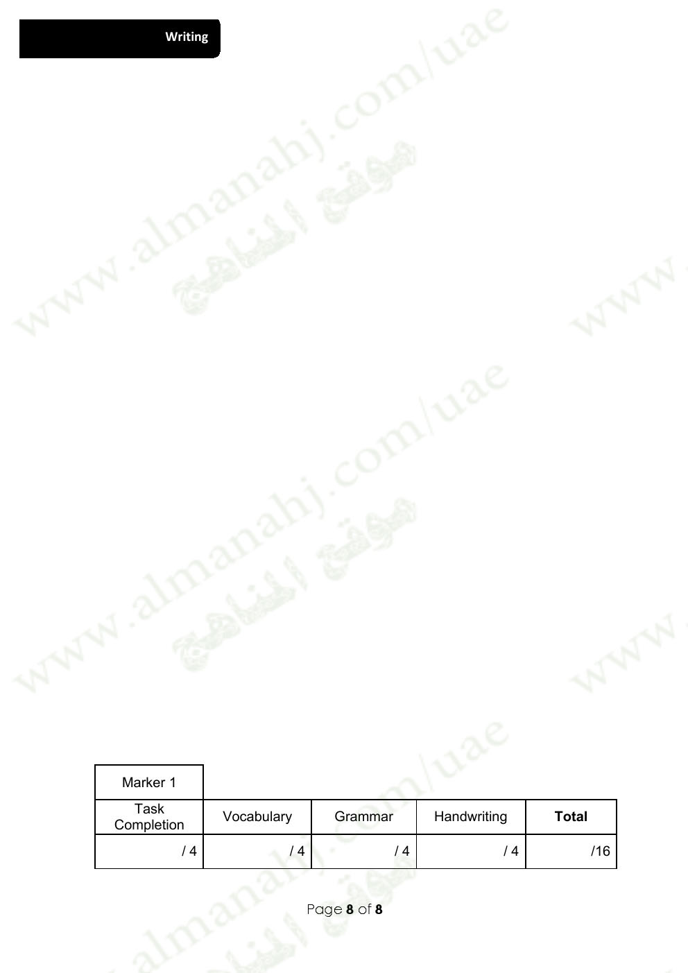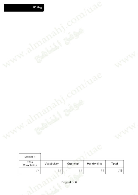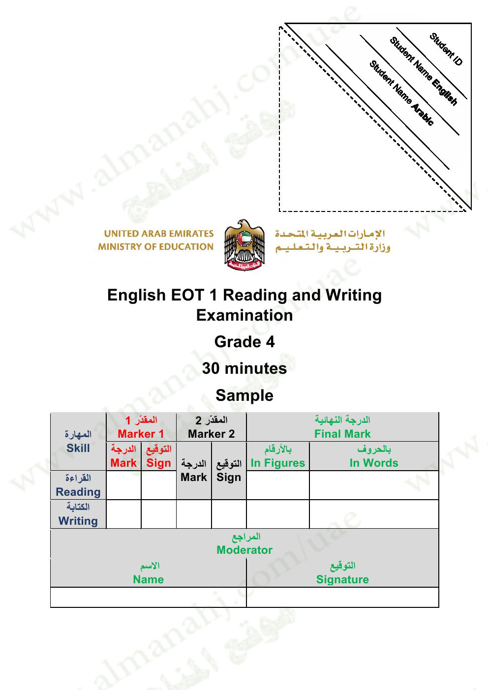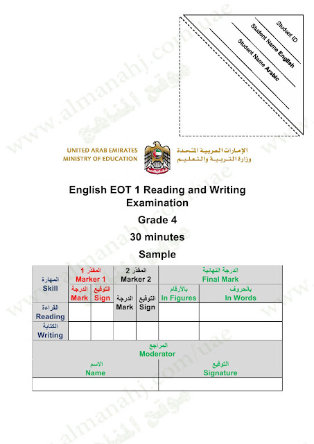 معلومات الملف: الصف الرابع, الفصل الأول, لغة انكليزية, 2017-2018, النموذج الرسمي لامتحان القراءة والكتابة | |||