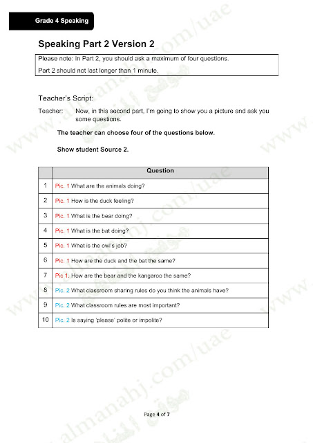 معلومات الملف: الصف الرابع, الفصل الأول, لغة انكليزية, 2017-2018, أهم إرشادات امتحان التحدث +نموذجأسئلة الامتحان | |||