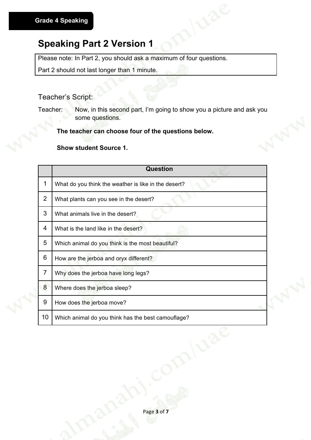 أهم إرشادات امتحان التحدث + نموذج أسئلة الامتحان | |||