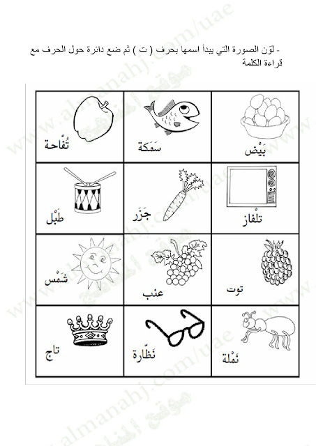 الصف الأول, الفصل الأول, لغة عربية, 2017-2018, ورقتي عمل حول حرف التاء