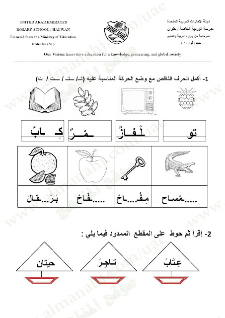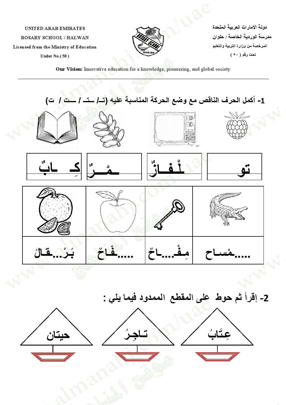 أنت هنا: موقع المناهجالمناهج الإماراتية الصف الأول لغة عربية الفصل الأول أوراق عمل