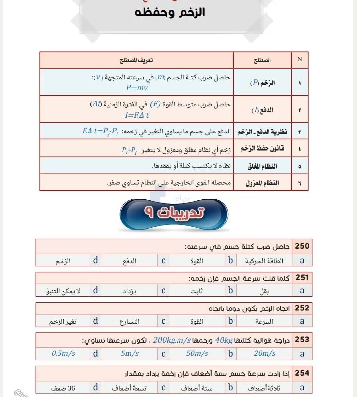 تم إيجاد الملف: مراجعة عامة وحدتي الزخم والطاقة