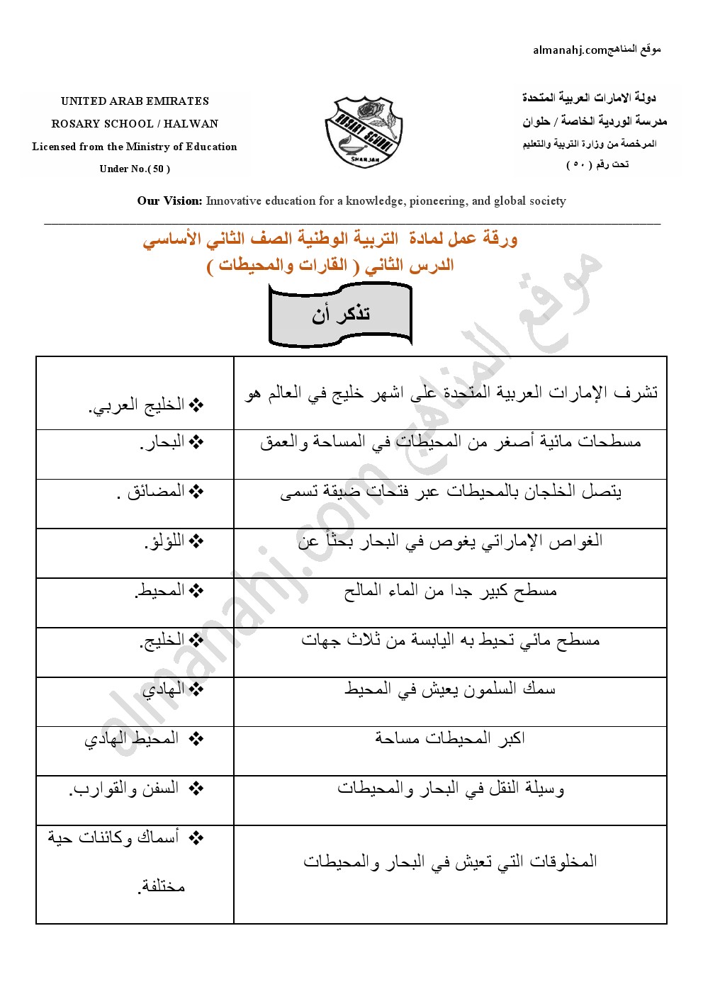 أنت هنا: موقع المناهج ⇦ المناهج الإماراتية ⇦ الصف الثاني ⇦ اجتماعيات ⇦ الفصل الأول ⇦ أوراق عمل |