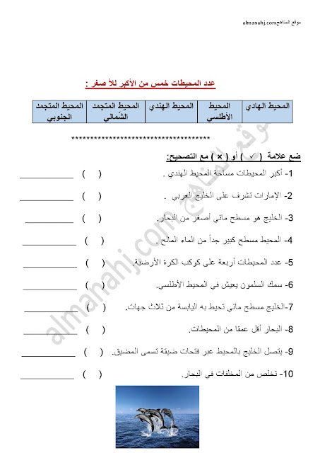 الصف الثاني, الفصل الأول, اجتماعيات, 2017-2018, ورقة عمل القارات والمحيطات
