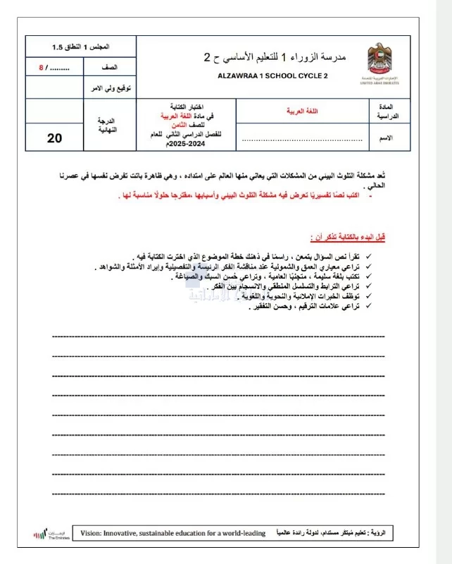 السابق: ورقة عمل الإمارات عاصمة الاقتصاد الإسلامي | الملف الحالي: 31513 | التالي: الدليل الإرشادي الوزاري لطريقة الكتابة في امتحان نهاية الفصل المسار المتقدم |