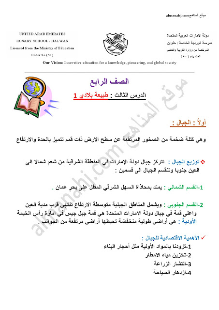 معلومات الملف: الصف الرابع, الفصل الأول, اجتماعيات, 2017-2018, ملخص وورقة عمل طبيعة بلادي | ||