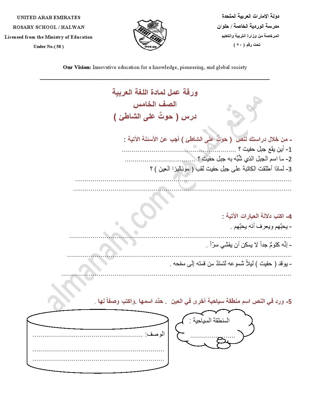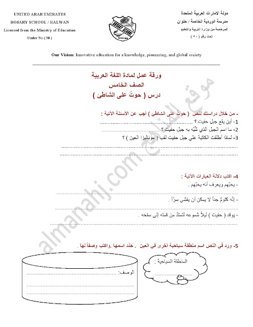 3. الصف الخامس, لغة عربية, ملخص وأوراق عمل درس أنواع الخبر في الجملة الاسمية
