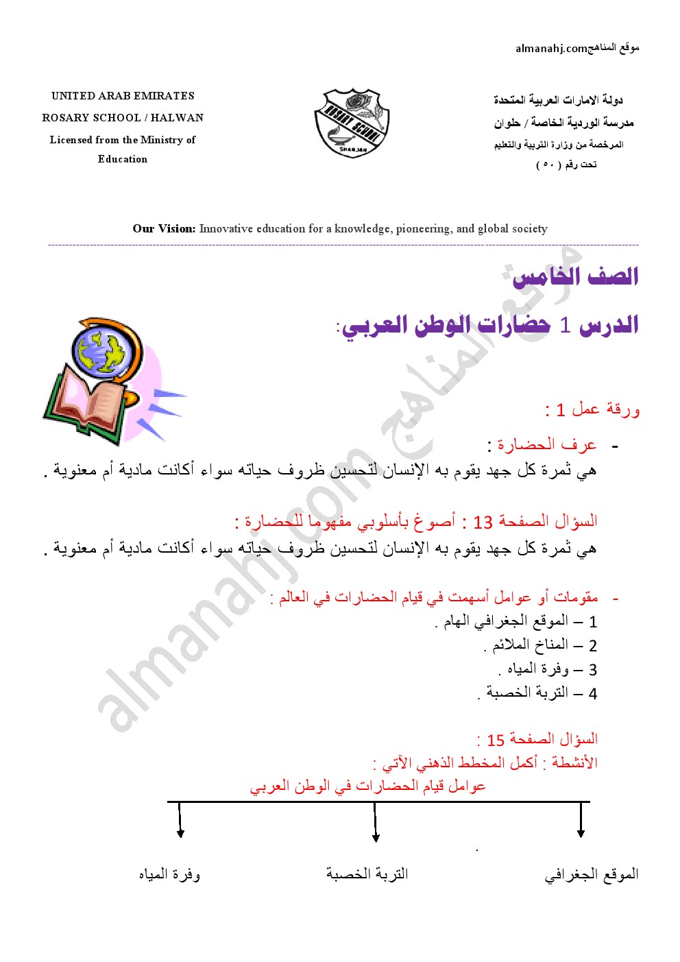أنت هنا: موقع المناهج ⇦ المناهج الإماراتية ⇦ الصف الخامس ⇦ اجتماعيات ⇦ الفصل الأول ⇦ أوراق عمل |