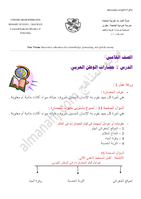 رابط تحميل وعرض ( ورقة عمل الدرس الأول حضارات الوطن العربي ) | |||